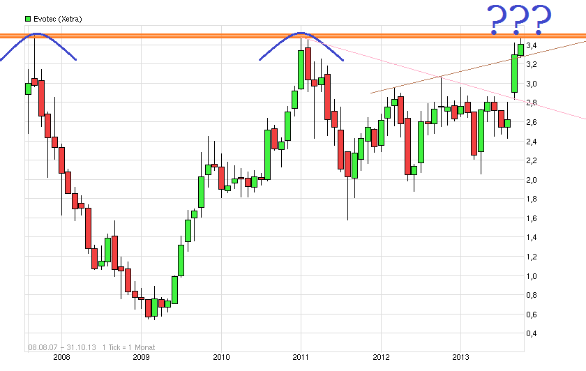 Evotec braucht immer etwas länger um gewisse Hürden zu überspringen. Momentan fehlen wieder mal ein paar gute News, die die Aktie nach oben treiben könnten. Ende August Stand Evotec bei 2,60€, heute bei 3,20€, insoweit hat Evotec mal wieder eine Ausszeit genommen.