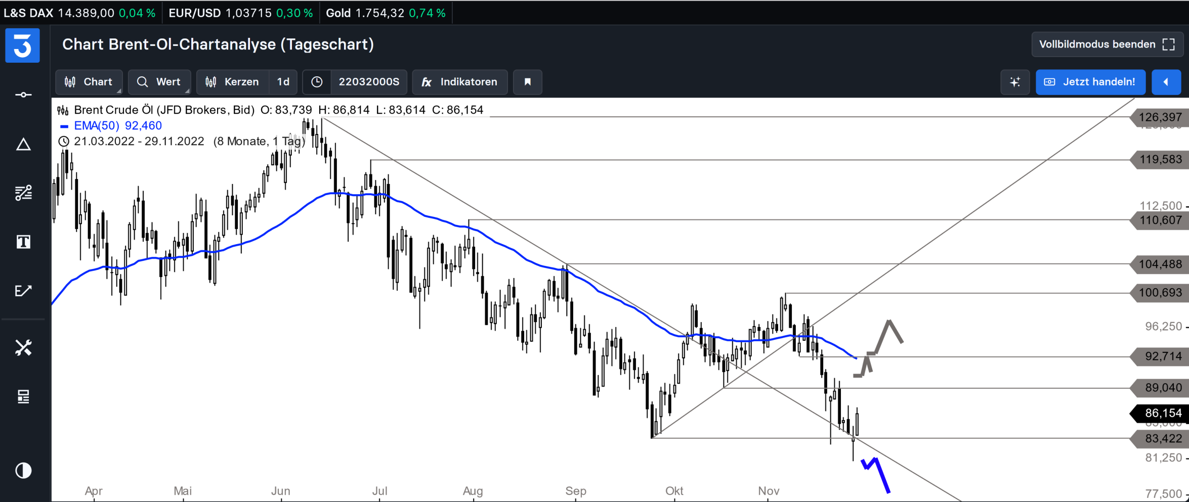 Also Resumee, höherer Verbrauch als vor Corona, geringere Produktion als vor Corona, Opec drosselt im November bisher um 1 Mio Barrel, in 3 Wochen tritt der Ölpreisdeckel und das Embargo für russisches Öl per Schiff in Kraft, die weltweiten Lagerbestände sind auf dem niedrigsten Stand seit Jahrzehnten, der Winter steht vor der Tür und der Preis fällt um 4% wegen Ängsten eines Nachfrageeinbruchs?????