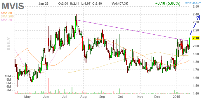 Im Moment zeigt MVIS eine gewisse Stärke. An schlechten Tagen verliert man nur leicht an guten gewinnt man stärker. Es fehlt nun noch eine gute Nachricht und der Hüpfer über 2€ sollte gelingen. Ich bin zuversichtlich, dass man im Bereich Automotive OEM Schritt für Schritt voran kommt und wenn die Kuh fliegt, dann wird das ein schönes Geschäft für MVIS. Was ich von UPS halten soll kann ich leider noch nicht sagen, weil mir einfach nicht klar ist was MVIS hier liefert und wie das follow up Geschäft aussieht. Klar ist auch das Celluon jetzt ziehen muss damit Menge und Umsatz kommt. Das ist die Basis für künftige neue Anwendungen im Elektronikbereich. Wenn jetzt noch ein Handybauer kommt und Kunde der Brillen für Augmented Reality anbietet, dann sollte das den Durchbruch bringen. AR mit dem Netzhautlaser ist ja der eigentlichen Clou bei MVIS, der Beamer und der ganze Projektionskram ist ja nur Brot und Buttergeschäft. Es wird jedenfalls interessant in 2015, wir werden wohl erstmals wieder steigende Umsätze sehen und was noch viel wichtiger ist, weiter bessere Ergebnisse.