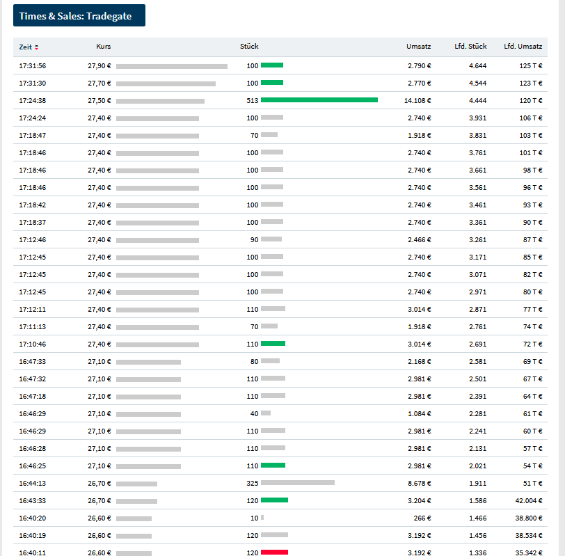 geht weiter. Im Bid nun bei 28€ und die Kaufgesuche sind noch unbedient.