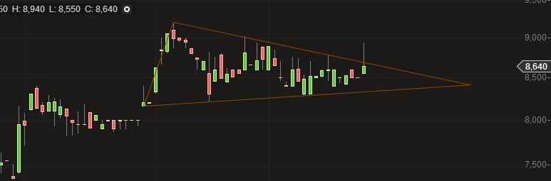 aktuell sieht's nach einer Seitwärtsbewegung zwischen 8,2 und 9,2 € aus.
