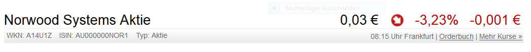 wie es aussieht gibts sogar Aktien von Norwood im Angebot für nur 0,03€..