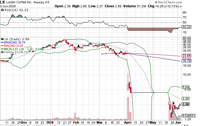 Luckin Coffe ist unter den US-Anlegern eine sehr beliebte Aktie. Das siehst du daran, dass es an der Nasdaq täglich ein sehr hohe Handelsvolumen gibt. Ich rechne hier mit einem Verdoppler, weil ich von einem gap close bei ca. 4,80$ ausgehe. Sollte der Kurs übrigens per Wochenschlusskurs darüber beenden, wären sofort 10,00$ das nächste Kursziel. Mir sind die fundamentalen Hintergründe bewusst und es ist sicherlich keine Aktie für die Altersvorsorge. Aber Luckin ist eine der beliebtesten Zocker-Aktien in den USA, schau einfach mal in die USA-Foren rein. In einigen Tagen wird der Q1-Bericht veröffentlicht und auch über den Verbleib an der Nasdaq entschieden. Ich glaube an eine positive Überraschung, zumal die aktuelle Börsenbewertung meiner Ansicht nach extrem niedrig ist. Bin am überlegen, ob ich die nicht wie Wirecard einfach länger behalte. Zweistellige Kurse sind nicht unrealistisch, wenn es keine bösen Überraschungen gibt.