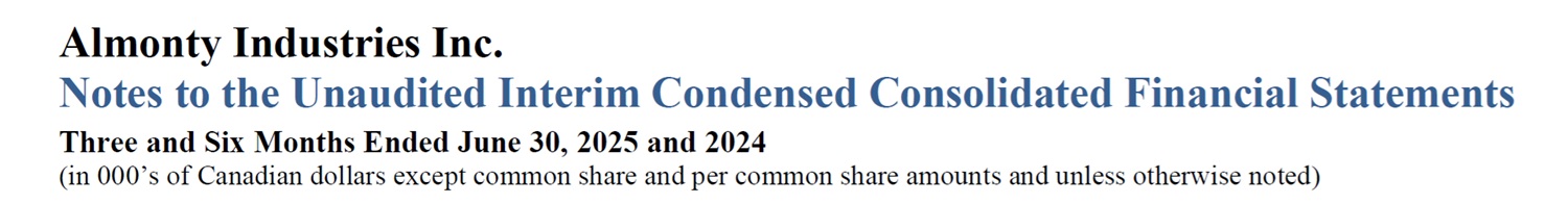 Almonty Industries Inc. Anmerkungen zum ungeprüften verkürzten Konzernzwischenabschluss Drei und sechs Monate bis zum 30. Juni 2025 und 2024 (in Tausend kanadischen Dollar, außer Stammaktien und Stammaktienbeträge und sofern nicht anders angegeben) 12