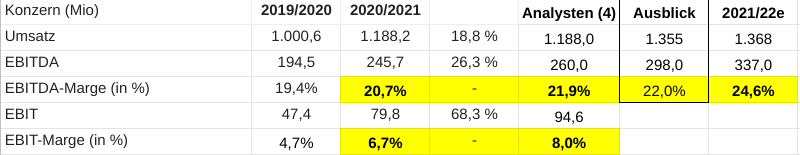 der markt sei "aufgrund der neuen Produktionskapazitäten im High-End Bereich von einem deutlich höheren Niveau von 24 bis 25 % und damit auch einem berichteten EBITDA von EUR 326 bis 345 Mio. ausgegangen", https://www.boerse-social.com/2021/05/18/...sblick_mit_mehr_gerechnet