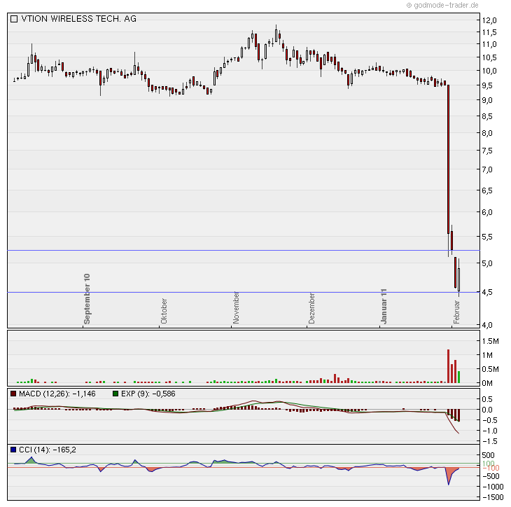 meine persönliche Meinung: trotz des schwachen Q4 2010 und dem deutlich abgespecktem Ausblick für 2011 war das Abrutschen der Aktie zu heftig. Deshalb gehe ich auch von einem Rebound aus, der in die Gegend von 5,50 bis 6,00 laufen könnte.