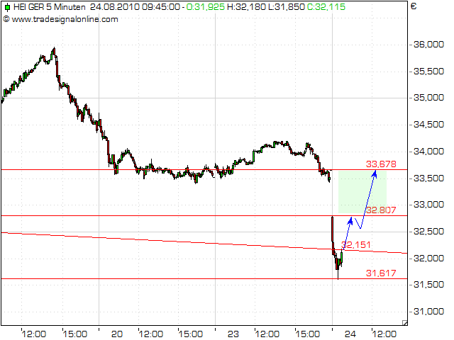 Charttechnisch gesehen besteht eine Chance, dass sich die Aktie jetzt bei 31,x erstmal fängt (untere Trichterbegrenzung und überverkaufte Indikatoren) und eine Gegenreaktion bis 34,x startet. Da der Chart aber grundsätzlich angeschlagen aussieht, ist mit einem Fall bis auf 26,x € zu rechnen. Erst über 36,5 € würde sich die Lage merklich aufhellen.