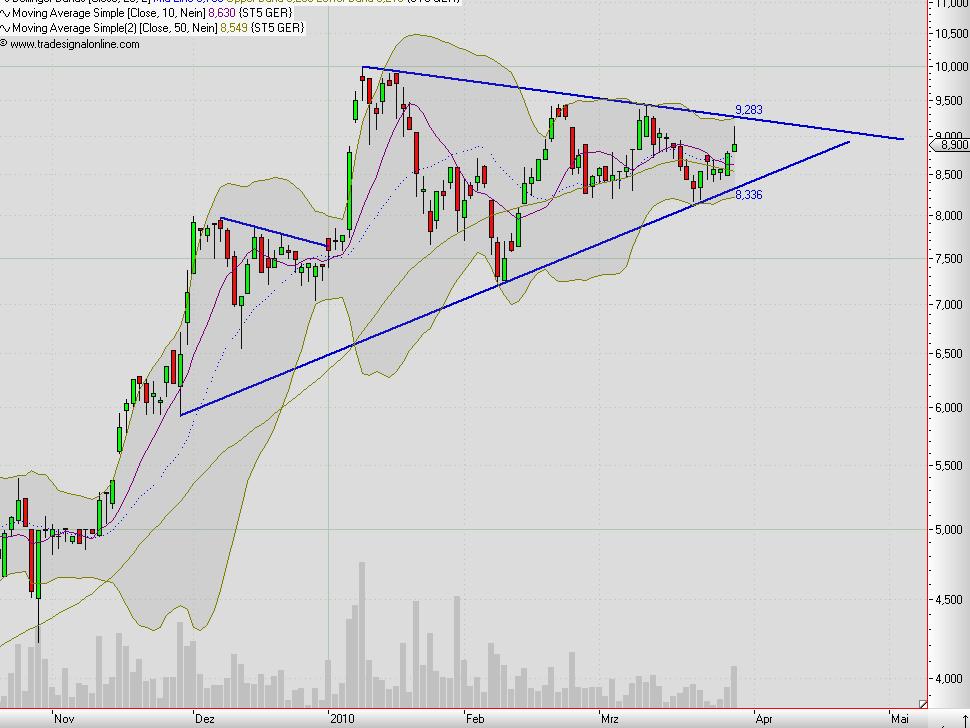 bollinger-breite auch wieder relativ schmal, denke in 1-2 wochen geht es weiter. (keine empfehlung)