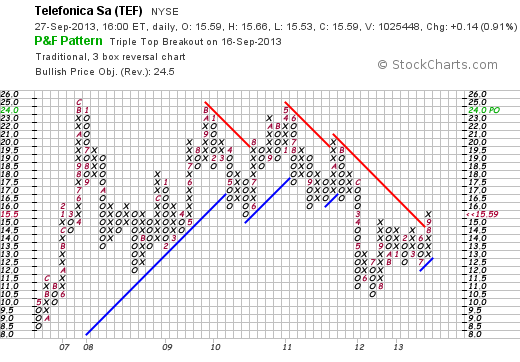Leise und unbemerkt hat Telefonica ein Tripple-Top-Breakout hingelegt mit einem projeziertem Ziel von 24 Dollar, sprich 18 Euro....