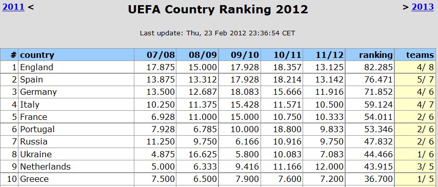 UEFA Ranking update