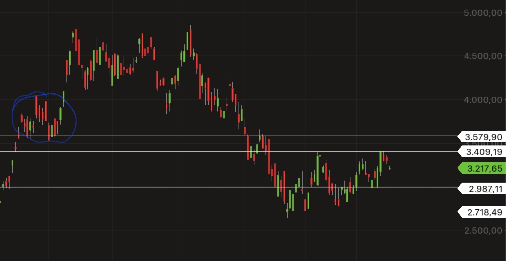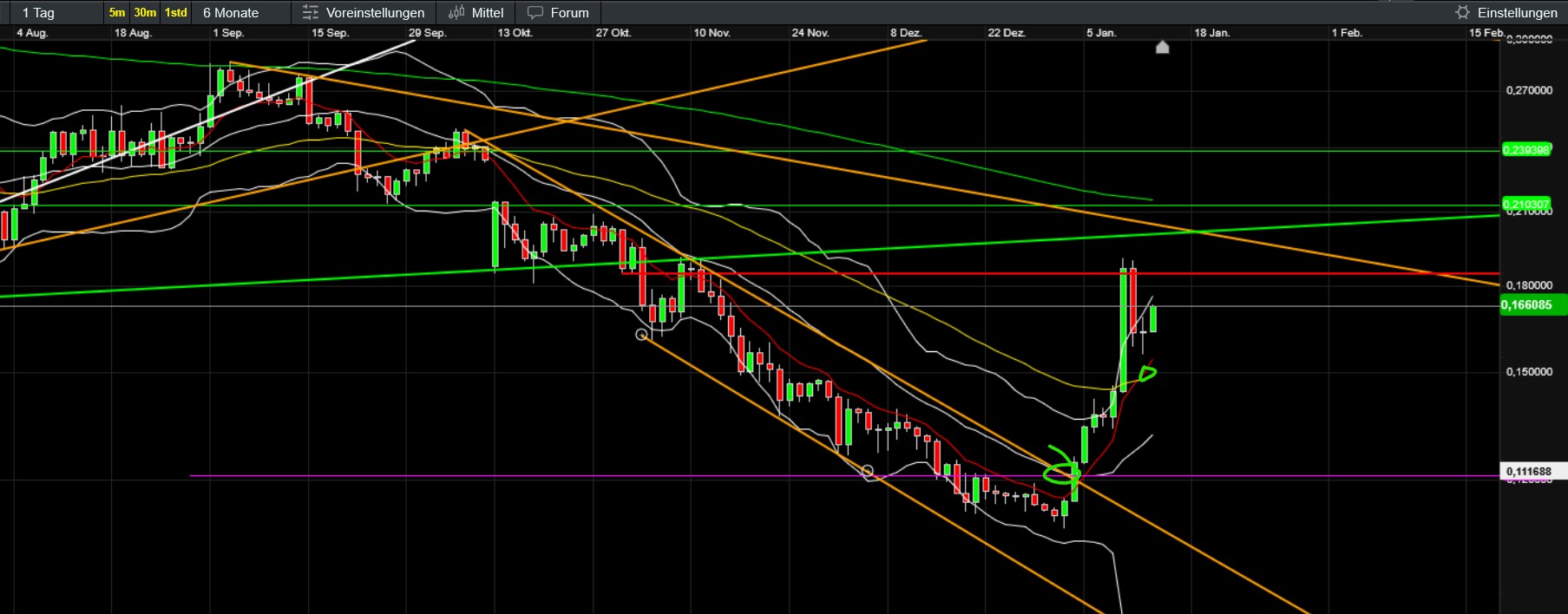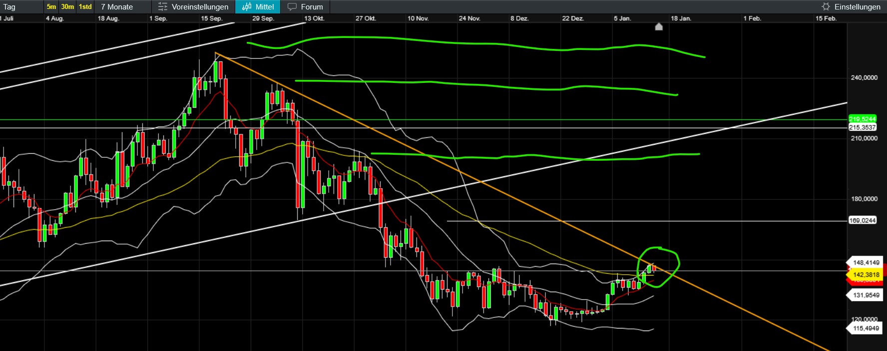 Etherium- seit November eiern die rum, die 3600 sind erstmal ein Brett, drüber werde ich auch bullisch ansonsten nur seitwärts geschiebe, hatten schon größere moves ohne Meldung von Donald- also morgen mal abwarten