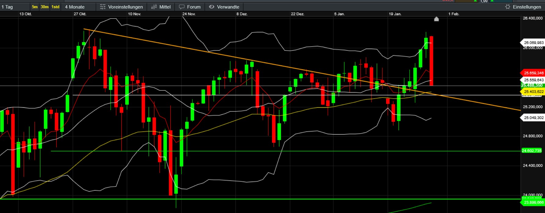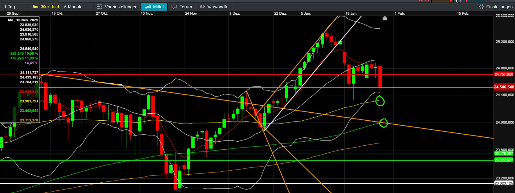 Da könnte noch was gehen bezüglich abwärts. Sieht nicht nach baldiger Erholung aus und vor dem WE und drohendem Irankonflikt wirds heute eher weiter abwärts gehen.