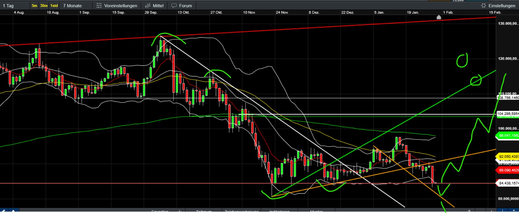 Ich denke auch, jetzt müsste es wenn drehen aber endlich einmal mit Nachdruck. Dann könnte man auf eine Art Doppelboden hoffen. Geht’s unter das Tief bei knapp über 80000 fürchte ich persönlich, dass die Flagge ihr Ziel 50000-60000 ausspielt und dass uns die 74000 auch nicht mehr retten. Leider ist die Schwäche derzeit einfach extrem ausgeprägt und es fehlt jegliche nachhaltige Gegenwehr. Ich warte heute einmal ab sonst werde ich allenfalls ein paar schmerzhafte Notverkäufe machen (alles was noch halbwegs moderat im Minus ist - mit so 20-30 Prozent) bevor ich mich letztendlich mit einem mehr als halbierten Depot wieder finde.