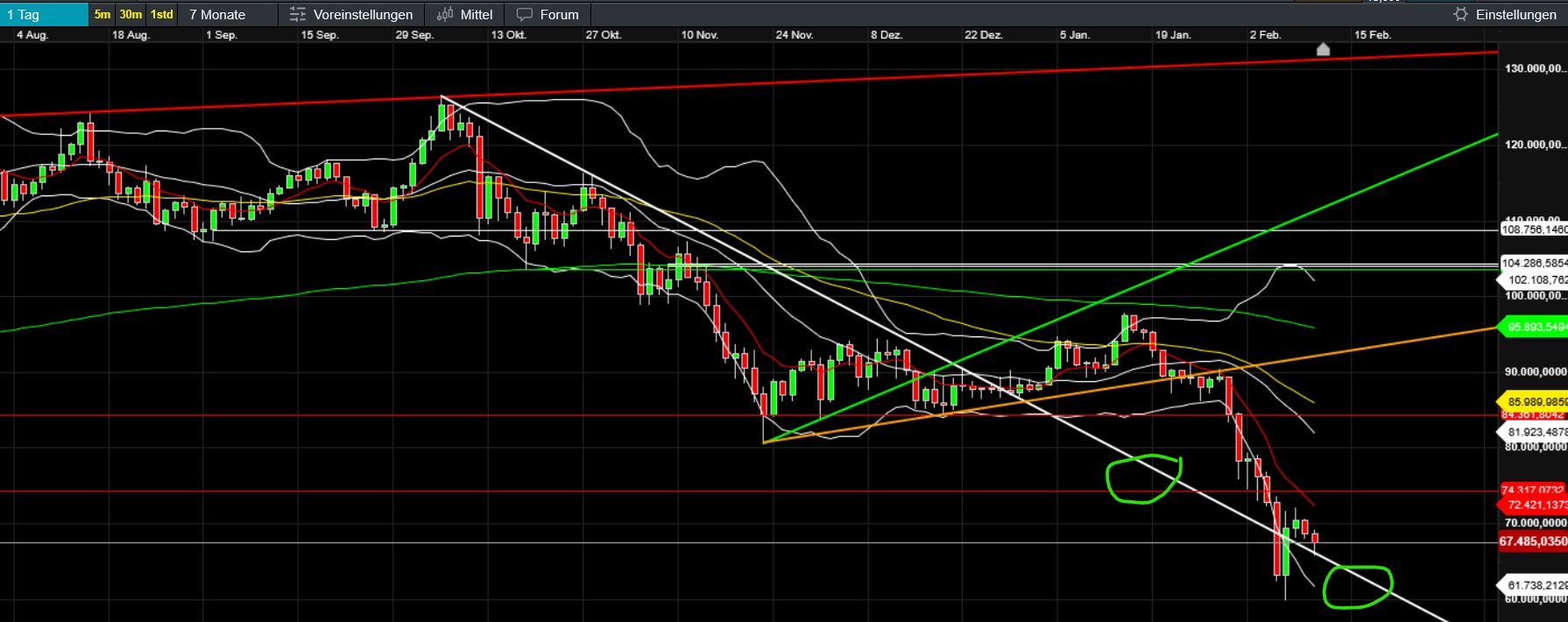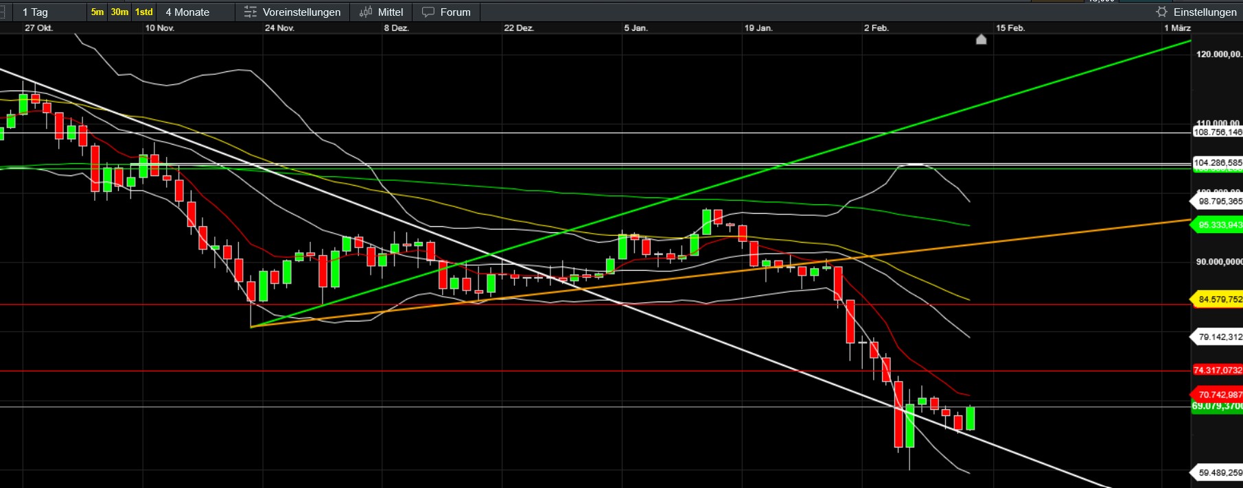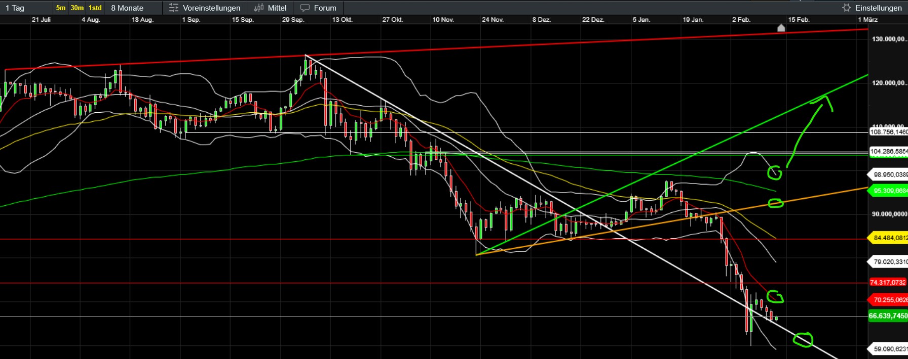 der bereich um die 94k bleibt oben die begrenzung - hört sich bei 68 komisch an - ist aber technisch so - thema RT´s ohen bruch dieser marke wird wahrscheinlich ein tief unter 50k kommen - unten wäre die 63 pi mal auge die marke als 23,6er der bewegung