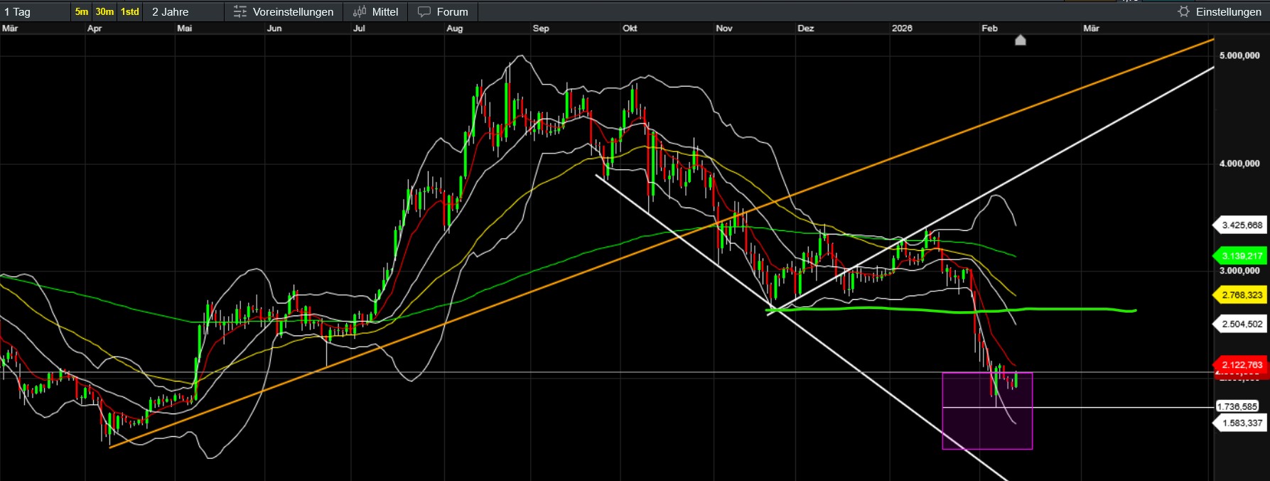 eth/btc chart sieht hässlich aus... riecht wieder nach 0,02 .... ich warte weiter bei alts...vermute einen doppelboden beim eth/btc chart mit dem tief von 2025. vorher rühr ich von den alts nix an.