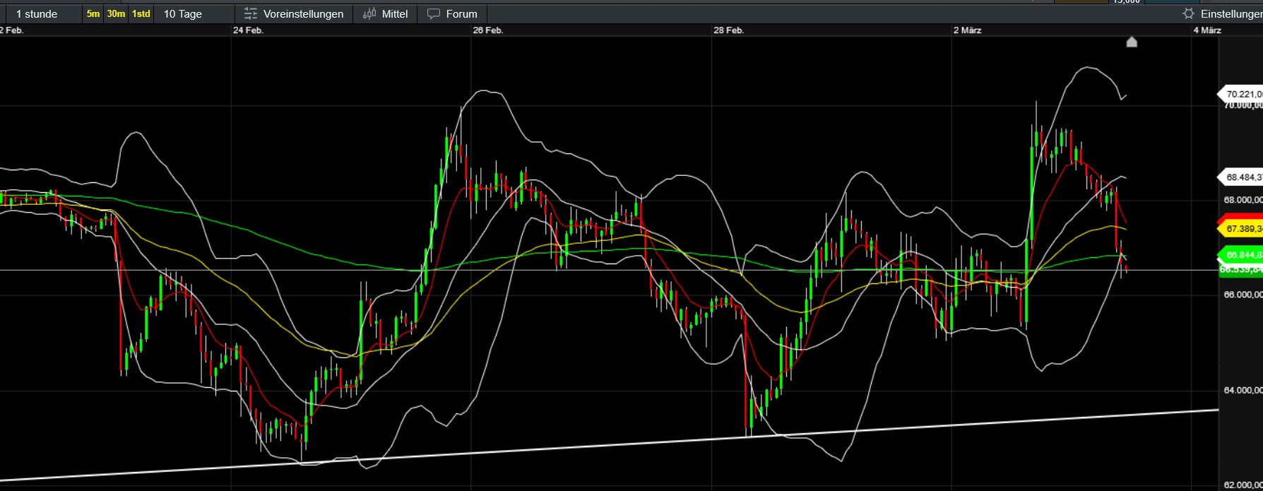 Passiert ist noch nichts. Mal sehen, ob es wieder hoch geht. Läuft es unter 66/65 k könnte es allerdings auch recht rasch Richtung 63000-60000 und ggf. tiefer gehen. Noch besteht aber sogar die Chance auf höheres Hoch, höheres Tief. In Summe glaube ich aktuell aber auch eher nicht an nennenswerte Anstiege da gibt’s einige Hürden bis vor allem rund 72000. Mittelfristig heißt es wohl sowieso abwarten weil attraktive Verkaufskurse sehen wir wohl sowieso erst frühestens Ende des Jahres. Hätten wir den Boden schon gesehen, wäre das äußerst untypisch. Aber wer weiß, der Zyklus ist bislang auch nicht vollkommen der Norm gefolgt.