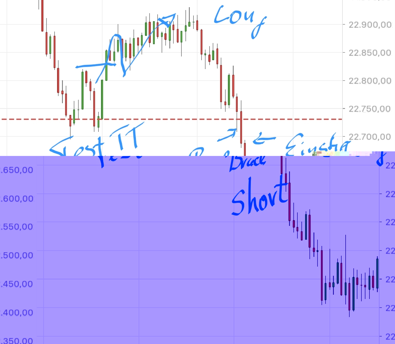 Neutrale Lesart: an 22.380 ist sowohl ein technischer Bounce möglich als auch eine Fortsetzung nach unten