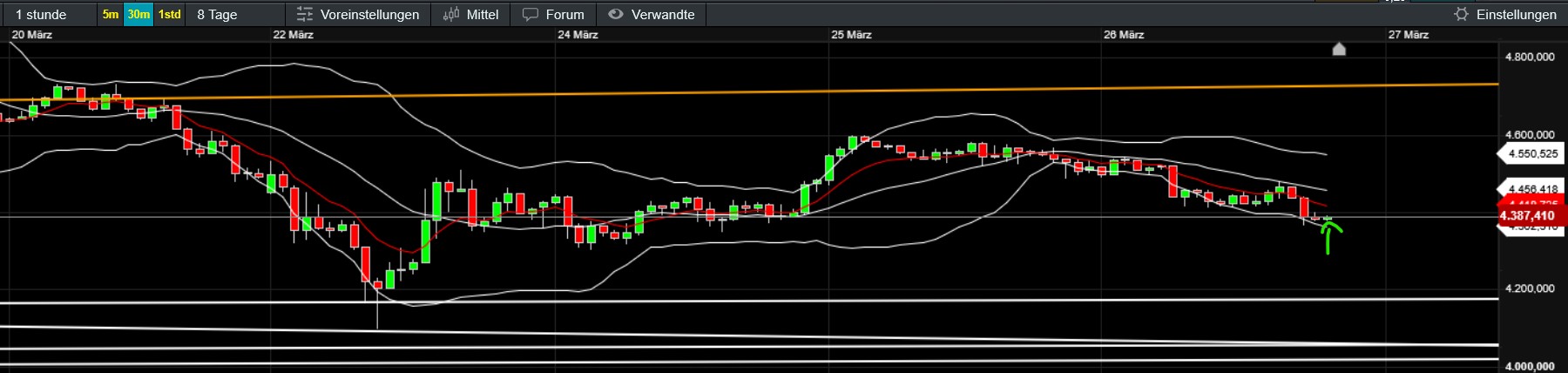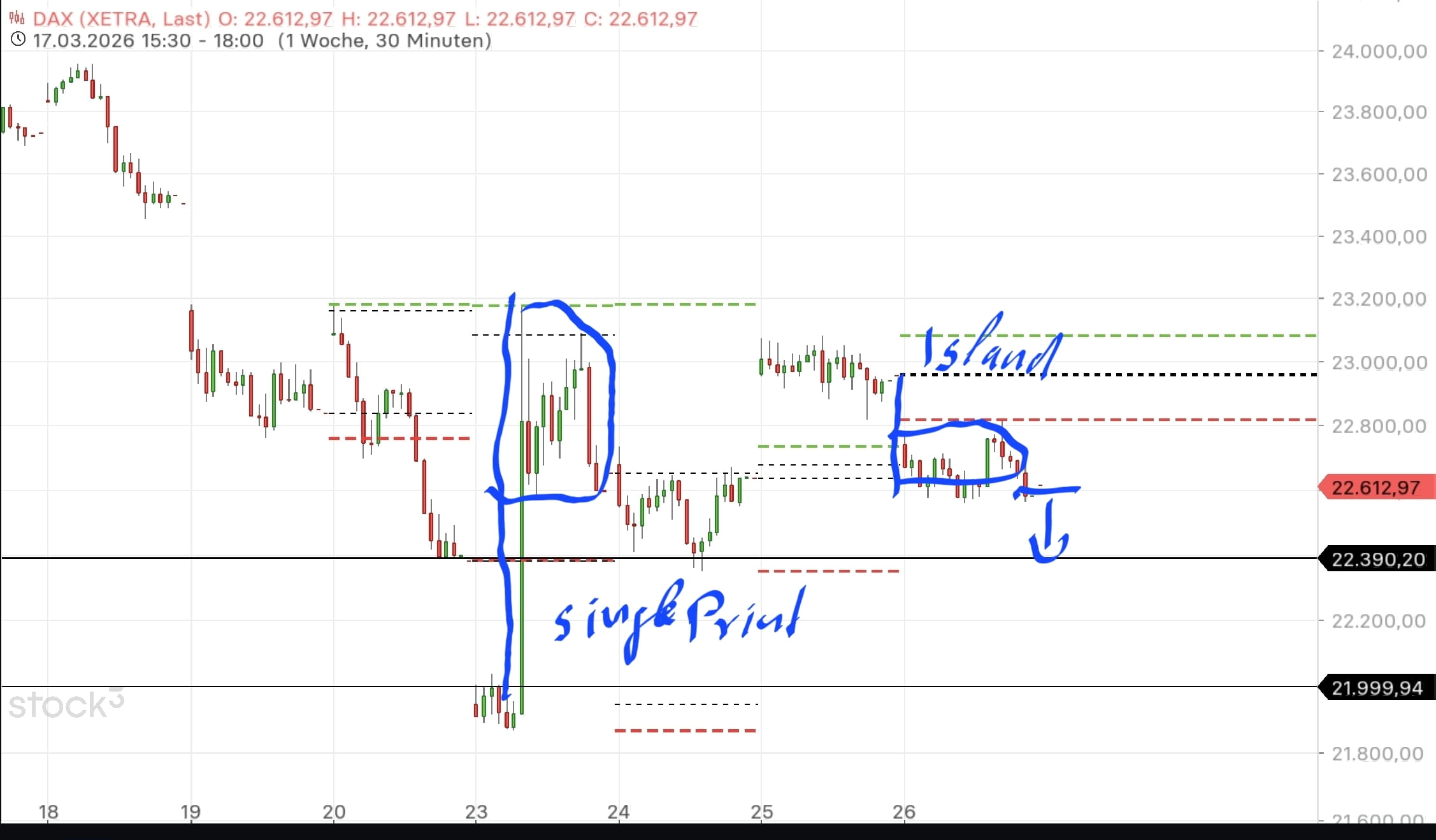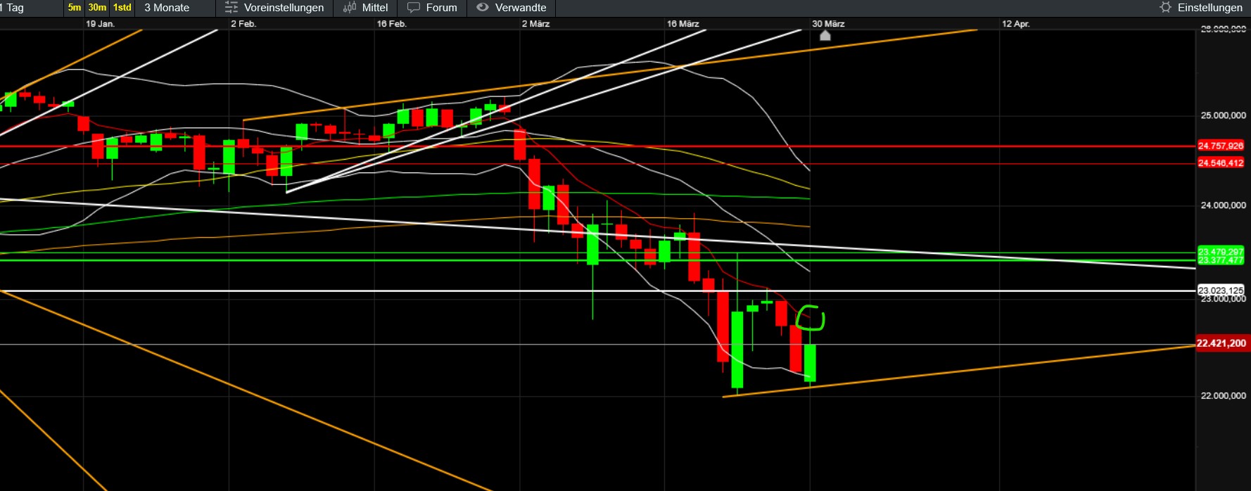 Einiges spricht dafür, dass wir die 22k unten im chart nochmals sehen werden. Allem voran der single print, der gefixt werden sollte. Ob sie das morgen schon schaffen oder erst am Montag bis 11.30 werden wir ja sehen.