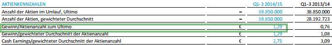 Beim Gewinn je Aktie erwarten die Berenberg-Analysten 1,35 Euro für 2014/15, sowie 0,94 bzw. 0,99 Euro für die beiden Folgejahre. Ihre Dividendenschätzung je Titel beläuft sich auf 0,19 Euro für 2014/15, sowie 0,20 bzw. 0,25 Euro für 2015 bzw. 2016.