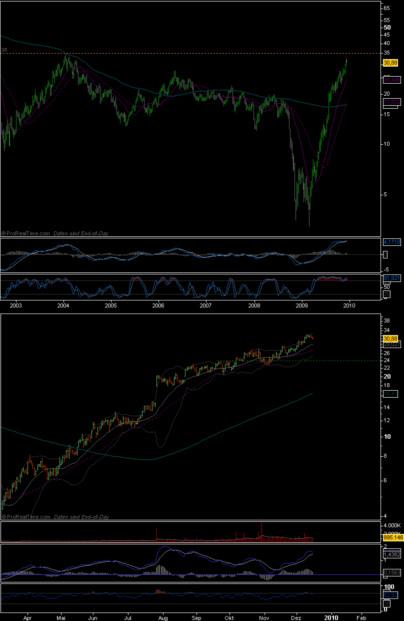 Sollte das halbwegs zeitnah geschehen, dürfte dieser Punkt in der 24er Gegend liegen, Primärziel wäre bei positiver Entwicklung der 35er Bereich (fünf-Jahres-Hoch). Bei Überwindung und Retest könnte hier dann auch pyramidisiert werden.