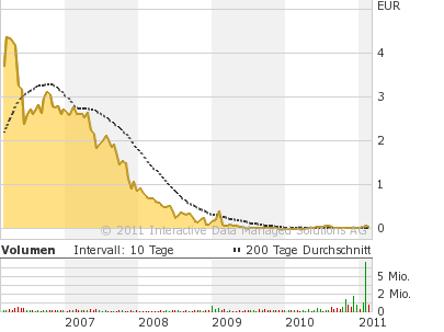 | Frankfurt | 0,075 EUR | 27.000 Stück | 2,50 € + Courtage | 0,065 EUR 21.02.11 11:24 |