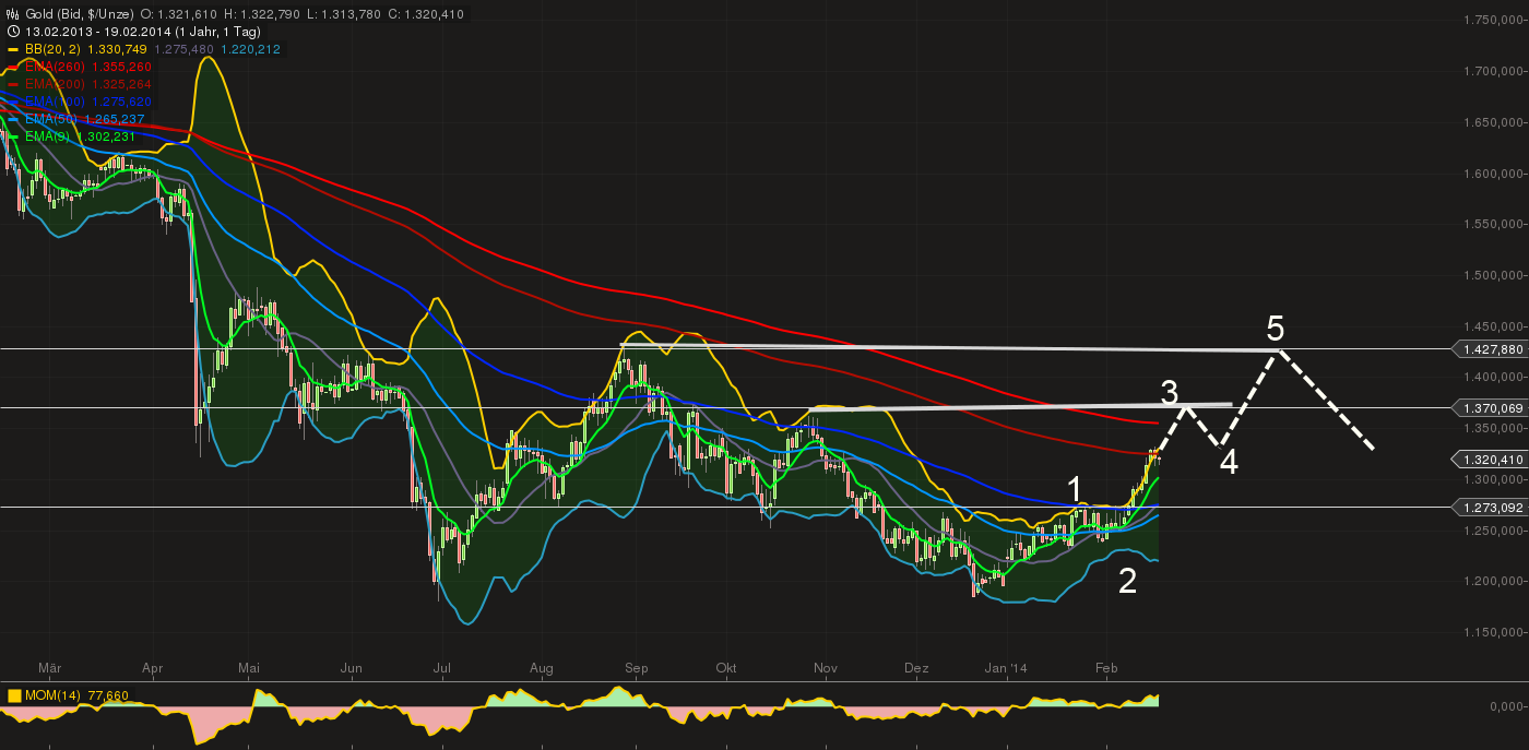Die nächste Hürde bei 1370 und dann auf 1430....danach dürfte es verhältnismässig deutliche Korrektur geben....