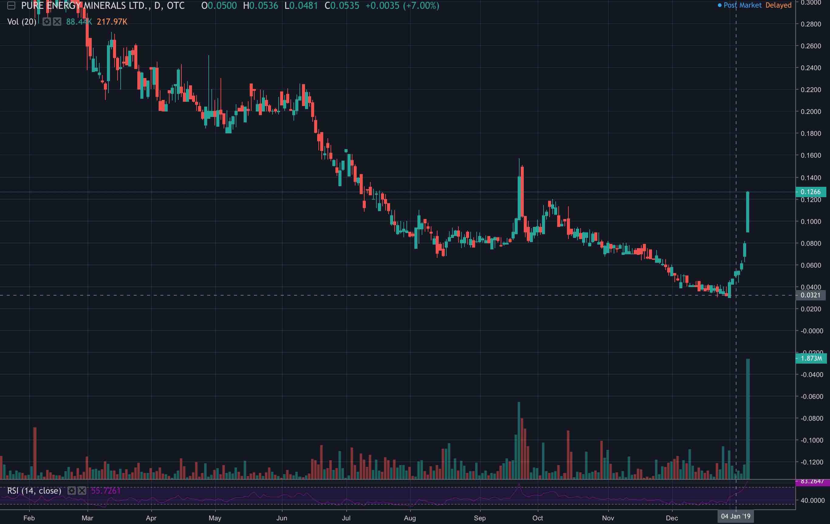 Ich denke der Peak geht auf das Wasserrecht zurück http://www­.pureenerg­yminerals.­com/invest­ors/shareh­older-info­rmation/