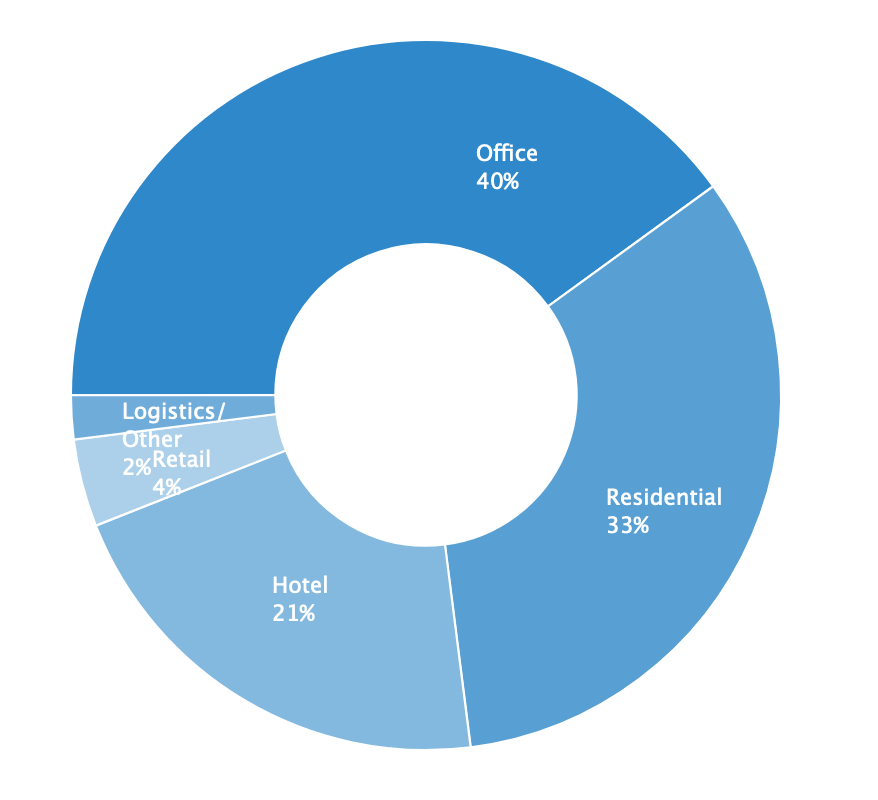 die büroflächen machen 40% aus, wohnungen 33% und hotels 21% - der mix bei aroundtown ist also ganz okay.