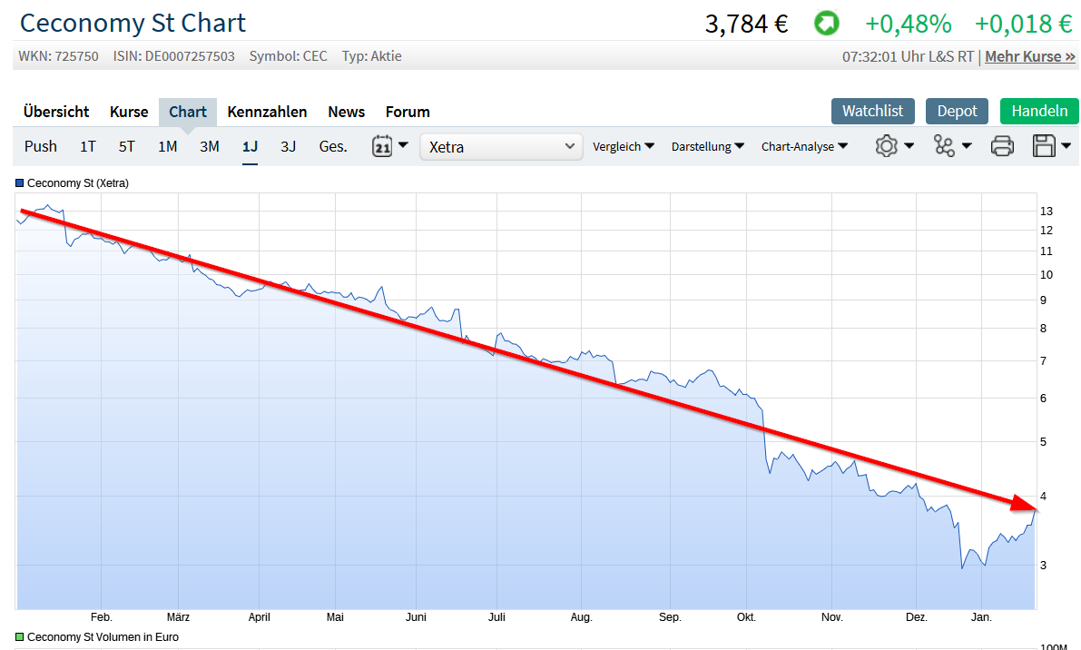 Ich bin mit meiner Ceconomy-Position rund 25% im Minus. Meine lezten beiden Erfahrungen als Kunde lassen mich an dieser Position mittlerweile ganz ernsthaft zweifeln.