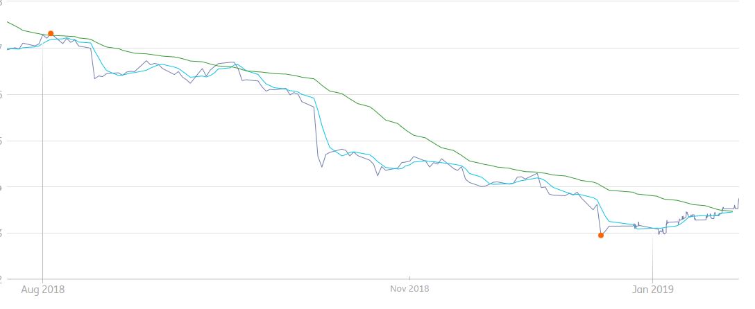 Zu dem Zeitpunkt wurde dei 38-Tage Linie noch nicht nach oben gekreuzt.