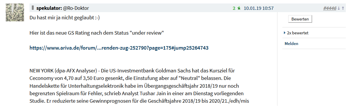 Ich meinte auf #4491 dass durch den massiven Kauf der Wikifolios die Ceconomy Aktie gestützt wird.