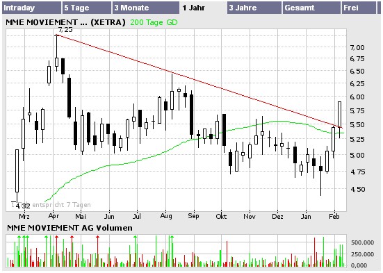 Es scheint als ob der Wert wiederentdeckt wird, wie bereits gesagt es hat eben der Newsflow gefehlt, und wenn jetzt Boerse-Online schreibt, folgen hoffentlich noch ein paar weitere Boersenblaetter. Dann bekommt MME hoffentlich einen Schub nach oben!