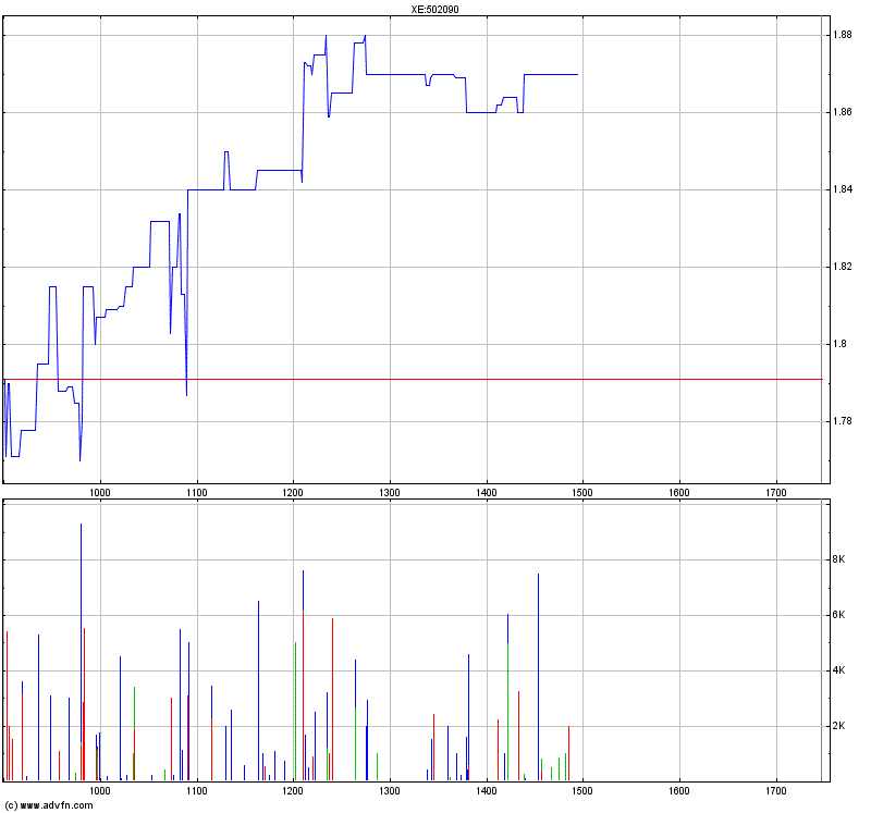Der Schlußkurs lag bei 1,845 für diesen Tag.. +0,045€ +2,50% zu gestern.. +0,15€ über die Woche oder +8,85%..