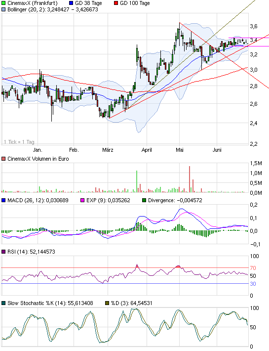 Für das laufende Geschäftsjahr erwartet CinemaxX auf Konzernebene einen Besucherzuwachs und damit erneut ein positives operatives (Vorsteuer-) Ergebnis - in etwa auf dem Niveau des Jahres 2010. Angesichts der rund 40 3-D-Filme, die 2011 auf die Leinwand kommen, eine recht konservative Annahme. Umso dynamischer könnte die Kursreaktion Richtung Norden ausfallen, wenn Cinemaxx mit seinen Halbjahreszahlen am 18. August positiv überraschen sollte. Die Bewertung lässt jedenfalls noch genügend Luft nach oben. Das 2012er-KGV liegt bei 8,4, dass Kurs-Umsatz-Verhältnis bei 0,42.
