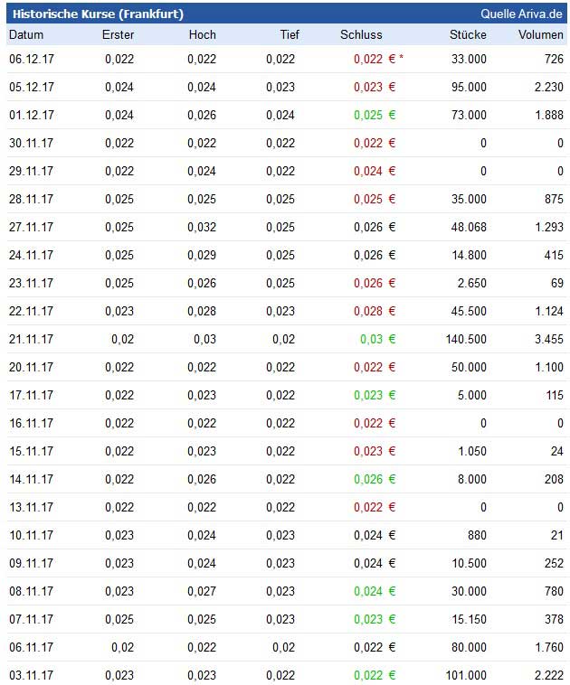 Weißt du so wenig über Börse, Immogirl ? Dann rate ich ab, Insolvenzaktien wie diese hier zu traden. Oder tradest du nur auf dem Papier bzw. im Musterdepot ?