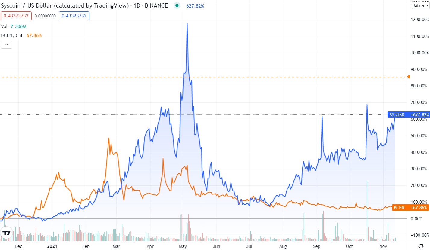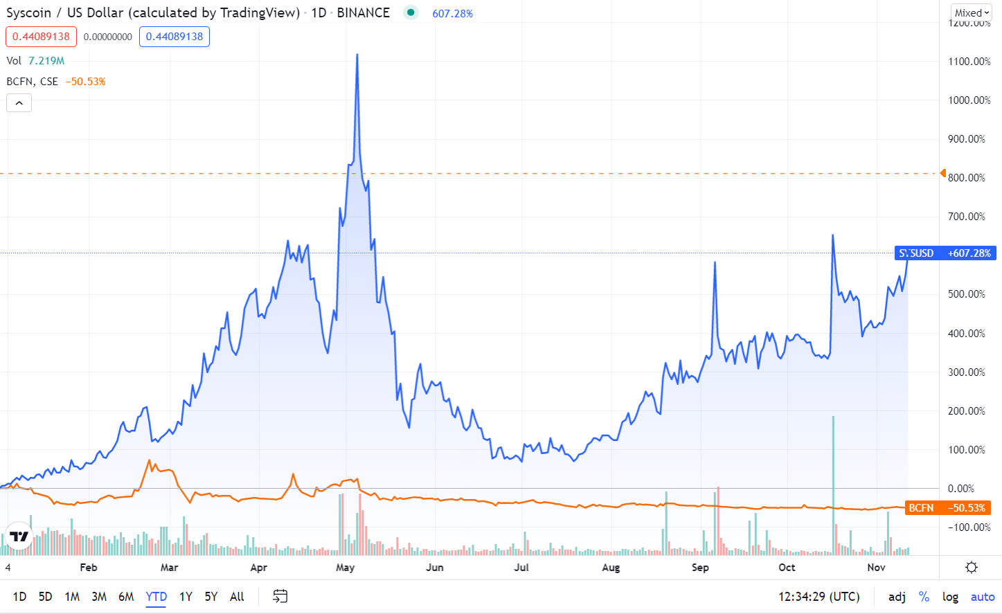Wobei Blockchain-Foundry zudem kein Syscoin-ETF, sondern eine Software-Schmiede in Schlüsselstellung mit einem sehr hohen Anteil an Syscoins ist!
