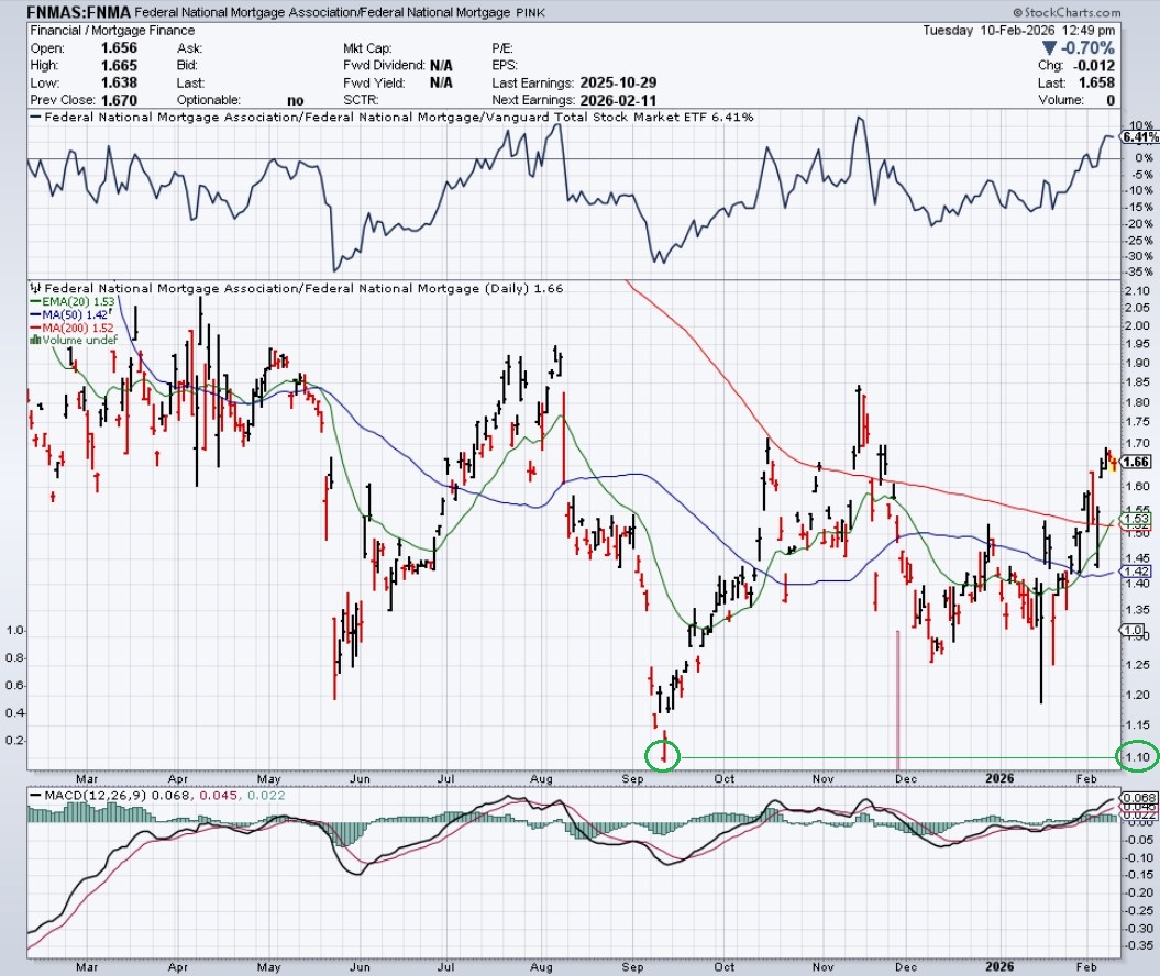 BTIG wies darauf hin, dass die Ausübung von Optionsscheinen durch das Finanzministerium für 79,9 % der Stammaktien von FNMA „der reibungsloseste und rationalste Ausgangspunkt für einen möglichen Ausstieg aus der staatlichen Aufsicht“ sein und zu einer genaueren fundamentalen Bewertung beitragen könnte.
