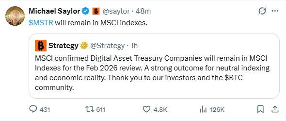 Der MSCI hat MSTR und andere nur vorläufig im Index belassen: