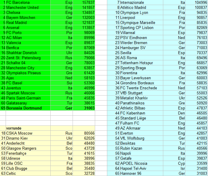Die blaue Mannschaften (viele große Nahmen!) haben alle zwar mehr Punkte als Dortmund, sind aber definitiv nicht dabei.
