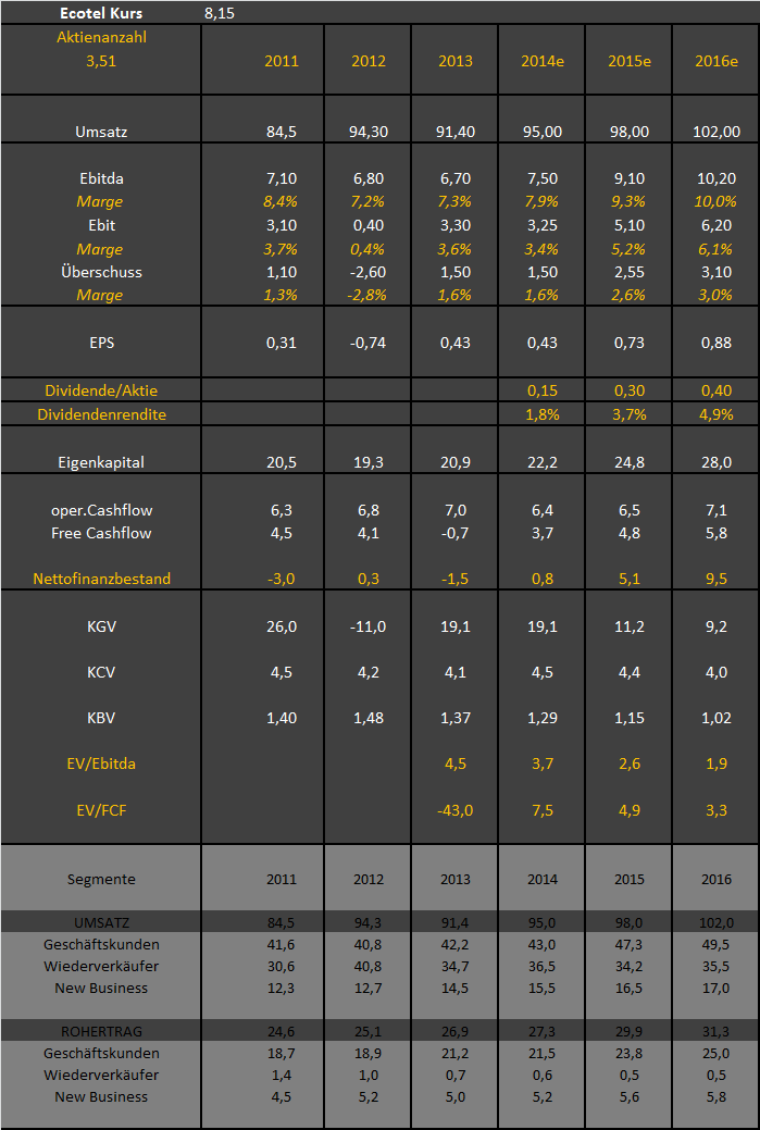Ecotel spricht ja bei seinen Aktienrückkäufen von indirekter Dividende. Laut aktueller HV-Präsentation (Seite 20) ist für das GJ 2013 somit eine indirekte Dividende von 22 Cent/Aktie (2011 9 Cent/2012 13 Cent) gezahlt worden. Warum sollte Ecotel bei einer direkten Dividende für 2014 weniger als 22 Cent auszahlen?