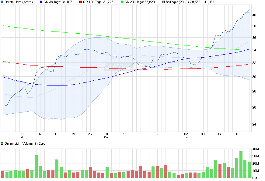 Auf der mittelfristigen Ebene ist aber jede Menge Platz nach oben hin bei Osram. In ein paar Wochen bis Monaten könnte sie ohne Probleme wieder bei 40 Euro und mehr stehen.