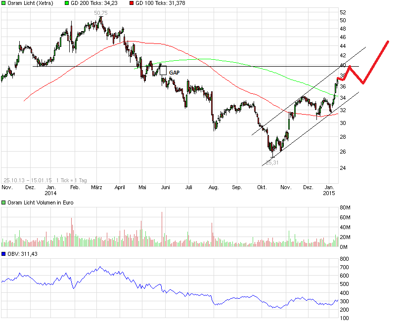 Mittelfristig sollte der Trend jetzt aber wieder relativ klar nach oben zeigen bei Osram. Das "Tal der Tränen" scheint hinter uns zu liegen. Ich sage 40 Euro spätestens im Januar. Und wenn dann das Börsenumfeld gut bleibt zum Frühjahr hin, sind auch 50 Euro denkbar.