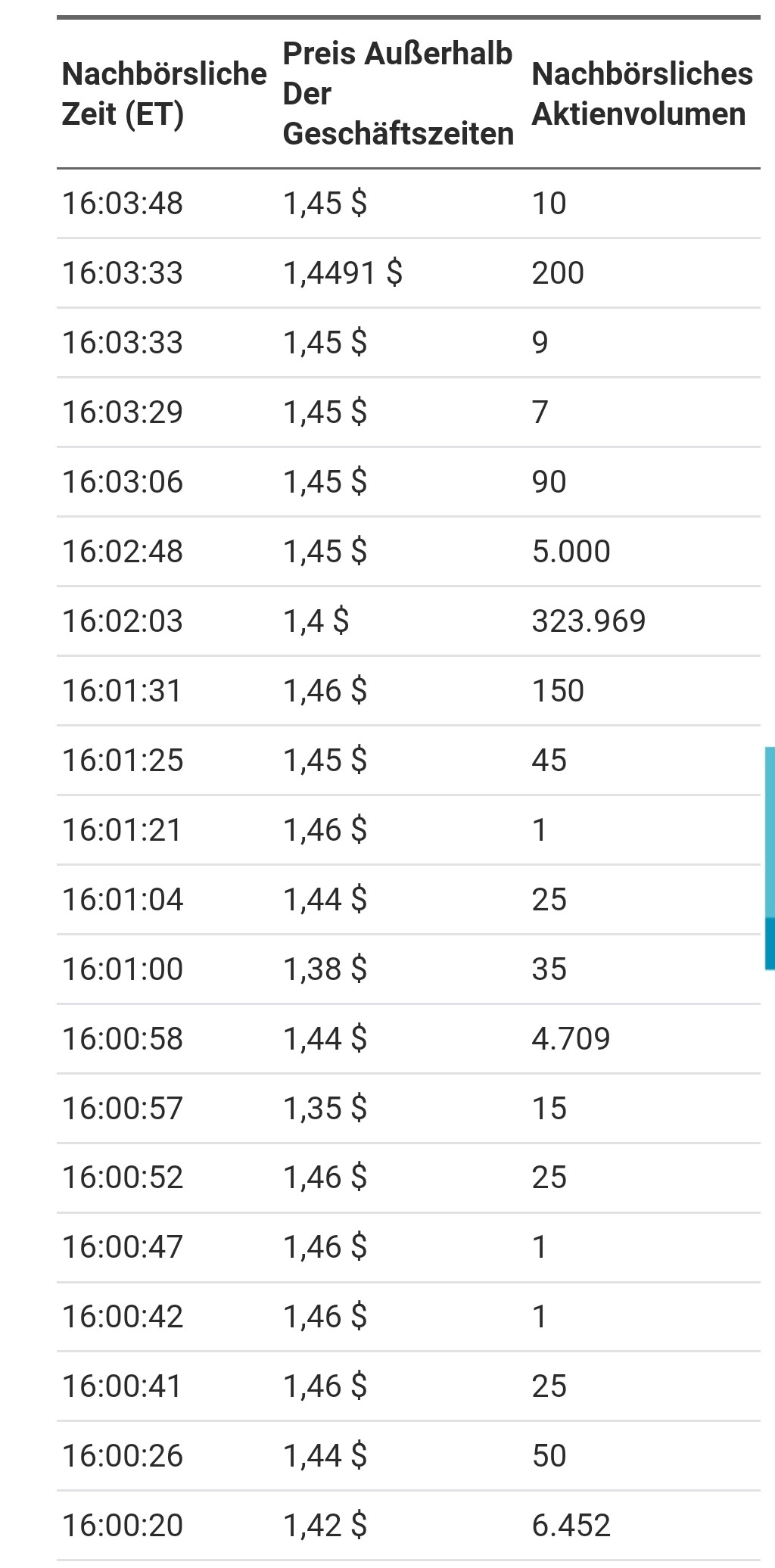 Direkt nach marktschluss sind über 300tsd mit einem trade gekauft worden, siehe screenshot.