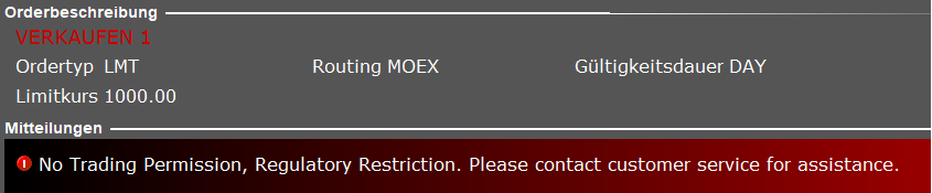 für nicht Russen der Handel untersagt sein. Deutschland hat es ja nach 45 auch wieder zurück in die Weltwirtschaft geschafft. Man muss halt viel Geduld mitbringen. Der aktuelle Kurs an der Moskauer Börse schmerzt natürlich, wenn man nichts davon hat.
