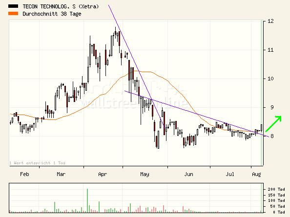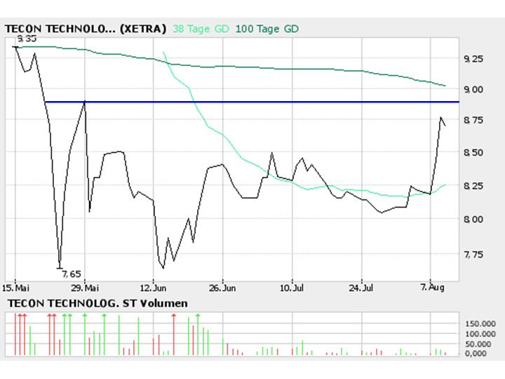 Mit einem Kursziel in Höhe von 15 Euro empfehlen die Experten der "EURO am Sonntag" die TECON-Aktie zum Kauf. Zur Absicherung sollte ein Stoppkurs bei 8,50 Euro platziert werden.