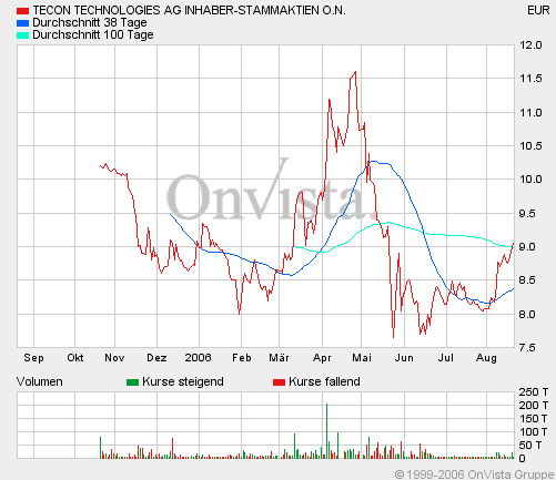 Sollte Tecon die Prognosen auch nur annähernd einhalten können, haben wir nach wie vor eine extreme Unterbewertung: Umsatzwachstum in 2006 von über 60% und in 2007 von neuerlichen 50% - und das bei überproportional wachsenden Erträgen !
