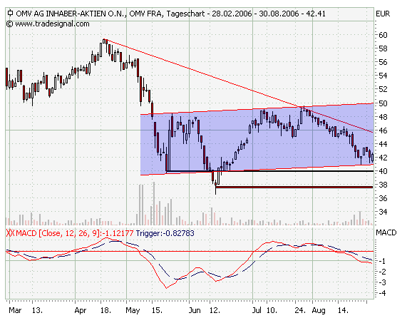 ...würde einen Test des oberen Trendbereichs bei 46 implizieren, bei guter Marktlage eventuell Bruch nach oben, da die Negativnews eingepreisst (ob nun fundamental berechtigt oder nicht - meiner Meinung nach nicht) sind. Newsflow dreht allmählich (siehe RZB, ERSTE auf Kauf). Ölpreis zieht wieder an.KGV 2006 bei 8. Aktienrückkauf. Spricht eigentlich alles für einen Ausbruch (längerfristig).