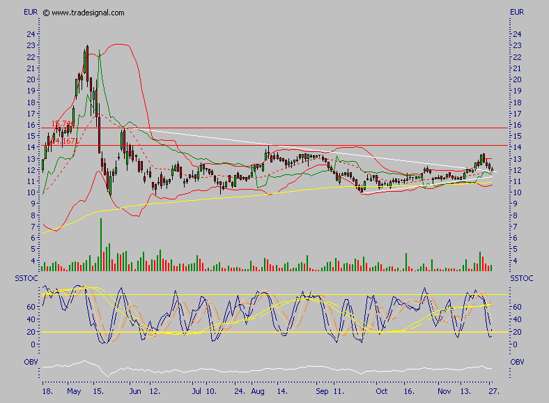 Der Boden bei 10 € ist in weite Ferne gerückt. Den sollten wir nicht mehr testen. Man sollte eher nach vorn als nach hinten gucken. Die Widerstände bei 13,40 €, 15,60 € und 23 € zum Beispiel.