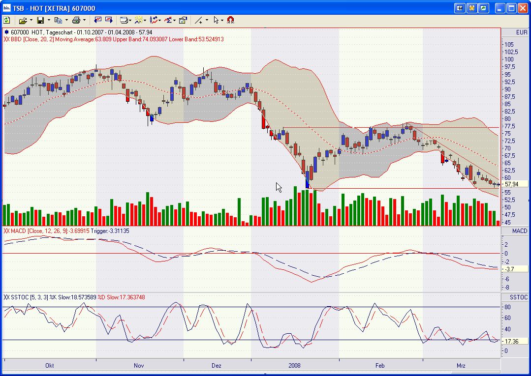 bis der Chart eine Bodenbildung zeigt oder ein Kaufsignal geliefert hat? Dann verliert ihr vielleicht die ersten 10 % des Anstiegs. Das ist aber immer noch besser, als im freien Fall das vermeintliche Schnäppchen aufzufangen (# 68) und nun auf 50 % Verlust zu sitzen. Selbst wenn Hochtief nicht mehr weiter fallen sollte (unwahrscheinlich, aber möglich), bräuchte man bei einem Kauf zu 40 Euro jetzt fast 100 % Anstieg, um auch nur auf "Break-even" zu kommen...