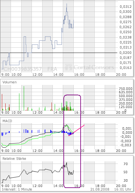 Kursdaten (in EUR), Stand: 14:25 Uhr 21.08.2008 Volumen